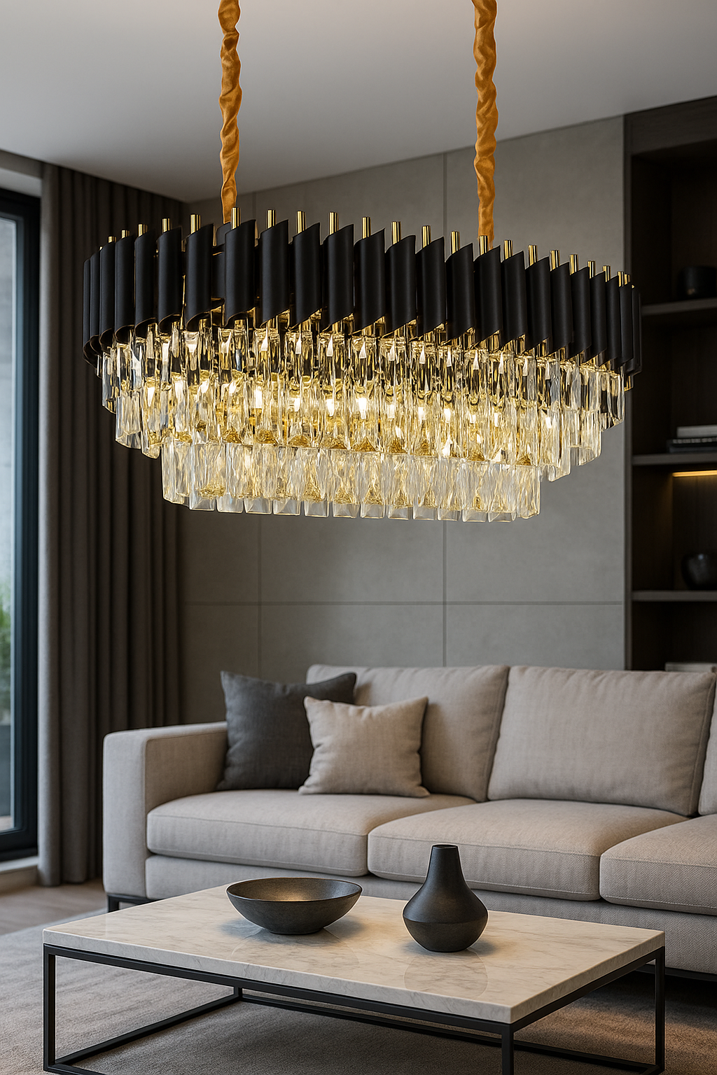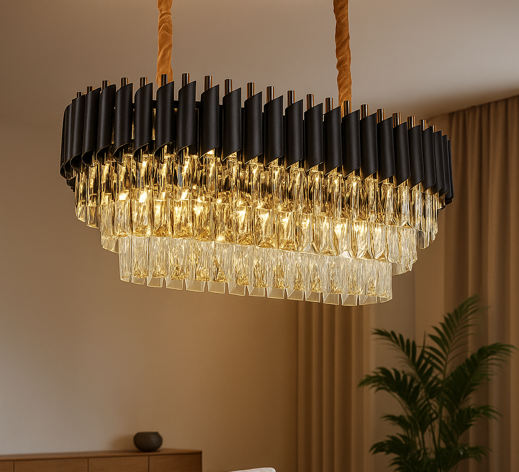 Bring grandeur and sophistication to your living space with this exquisite Luxury Contemporary Crystal Chandelier, a masterpiece of modern design and timeless elegance. Thoughtfully engineered for both aesthetics and functionality, this chandelier is the perfect centerpiece for upscale interiors such as living rooms, dining halls, lounges, or reception areas.