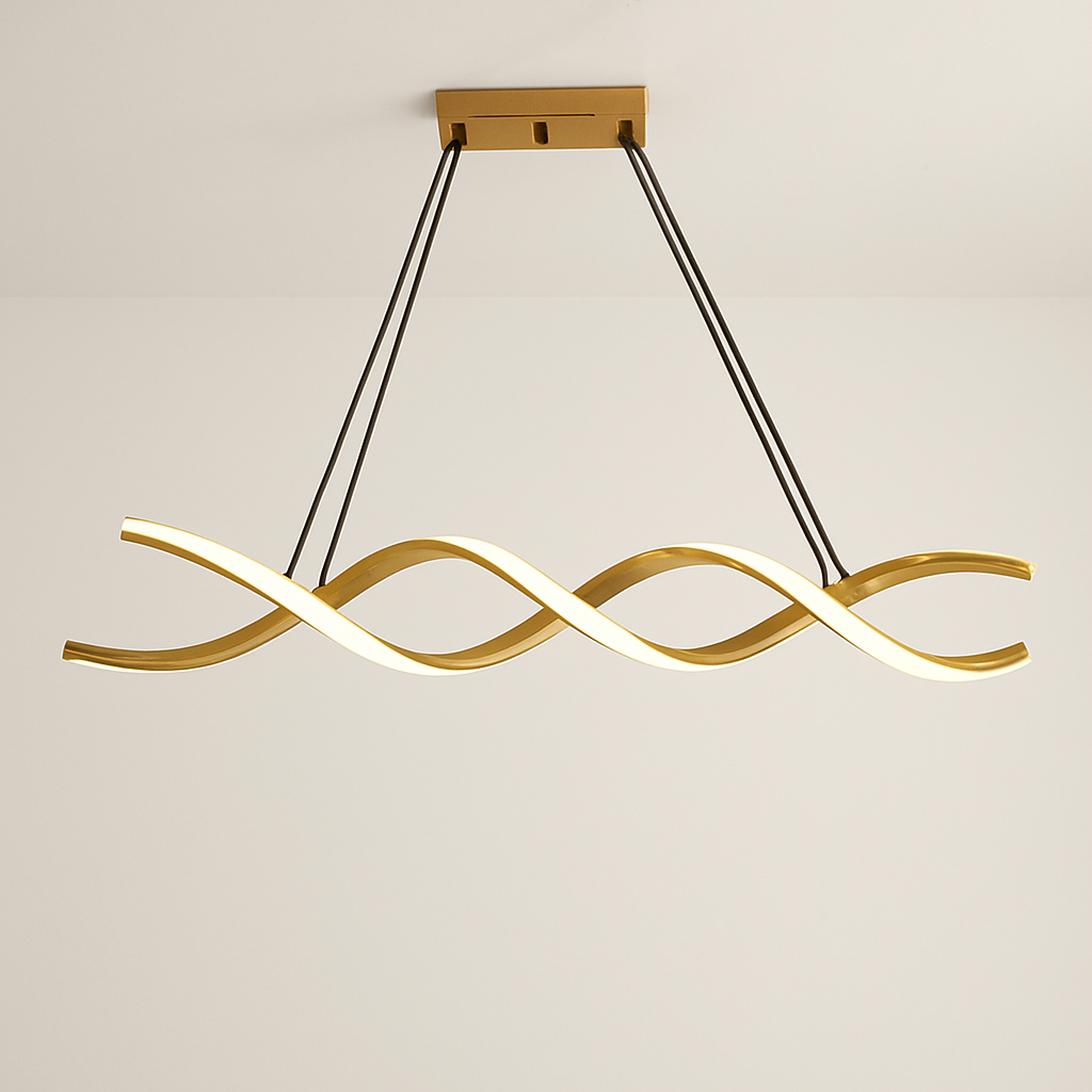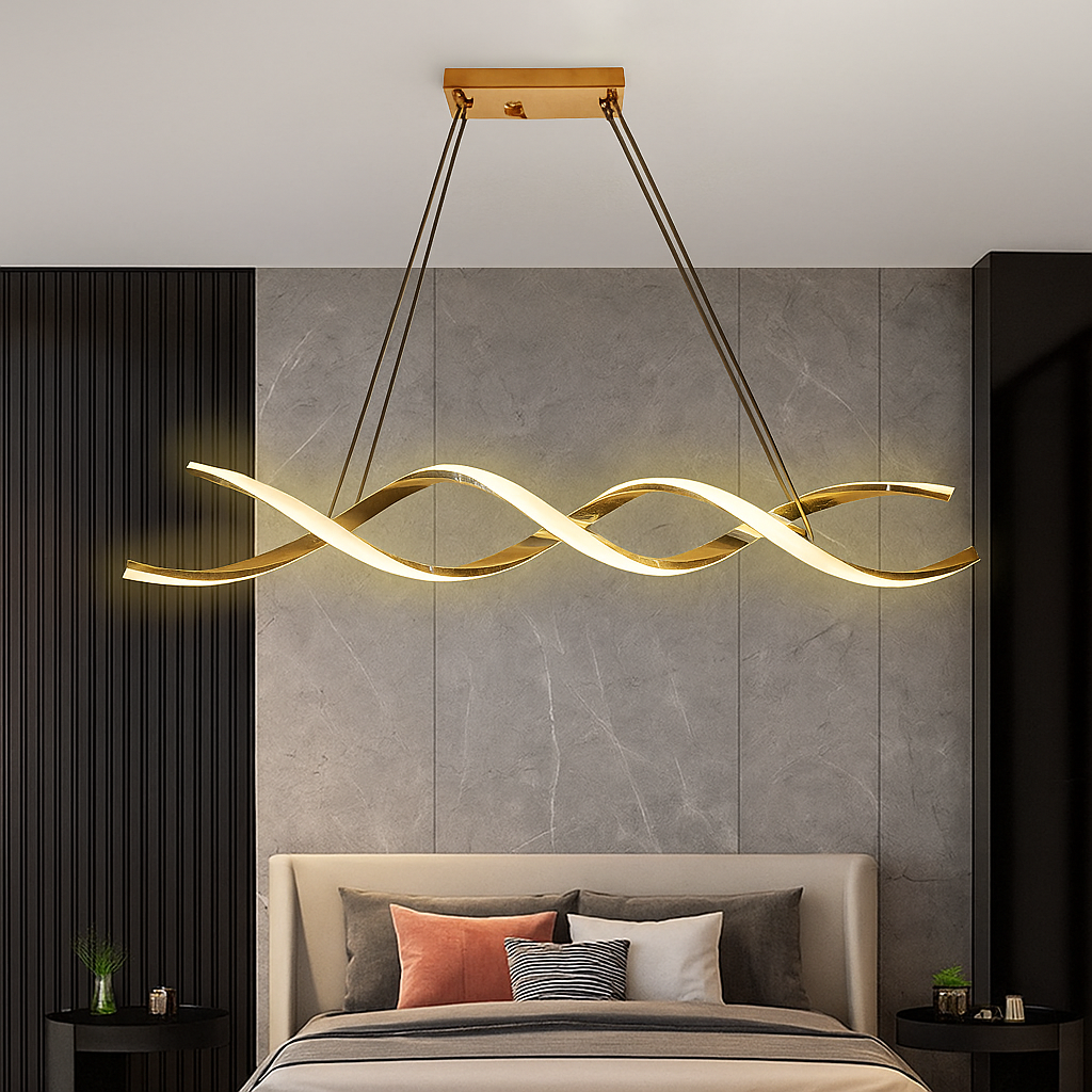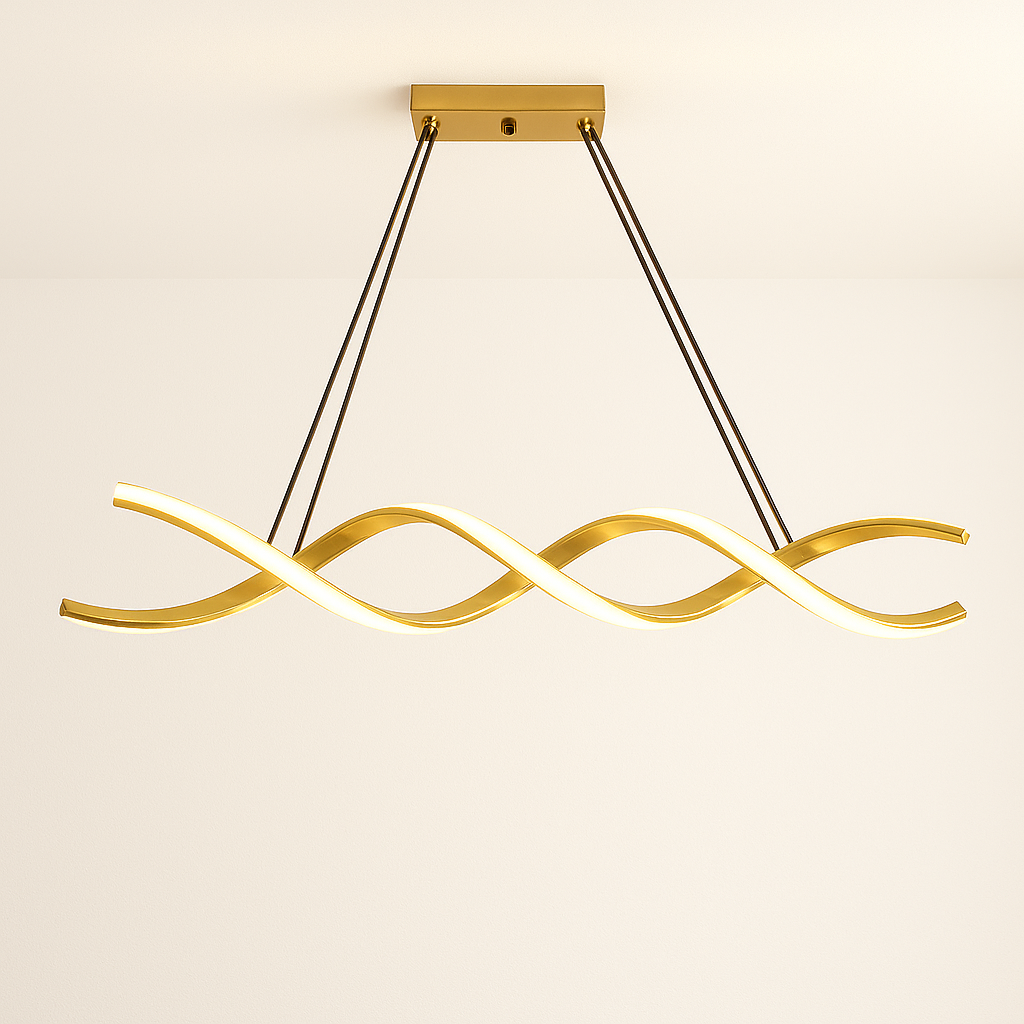 • Add a touch of luxury and elegance to your interiors with this Modern LED Twisted Wave Chandelier. Designed with a unique twisted wave shape and a luxurious golden finish, this ceiling light is the perfect blend of contemporary style and ambient lighting.