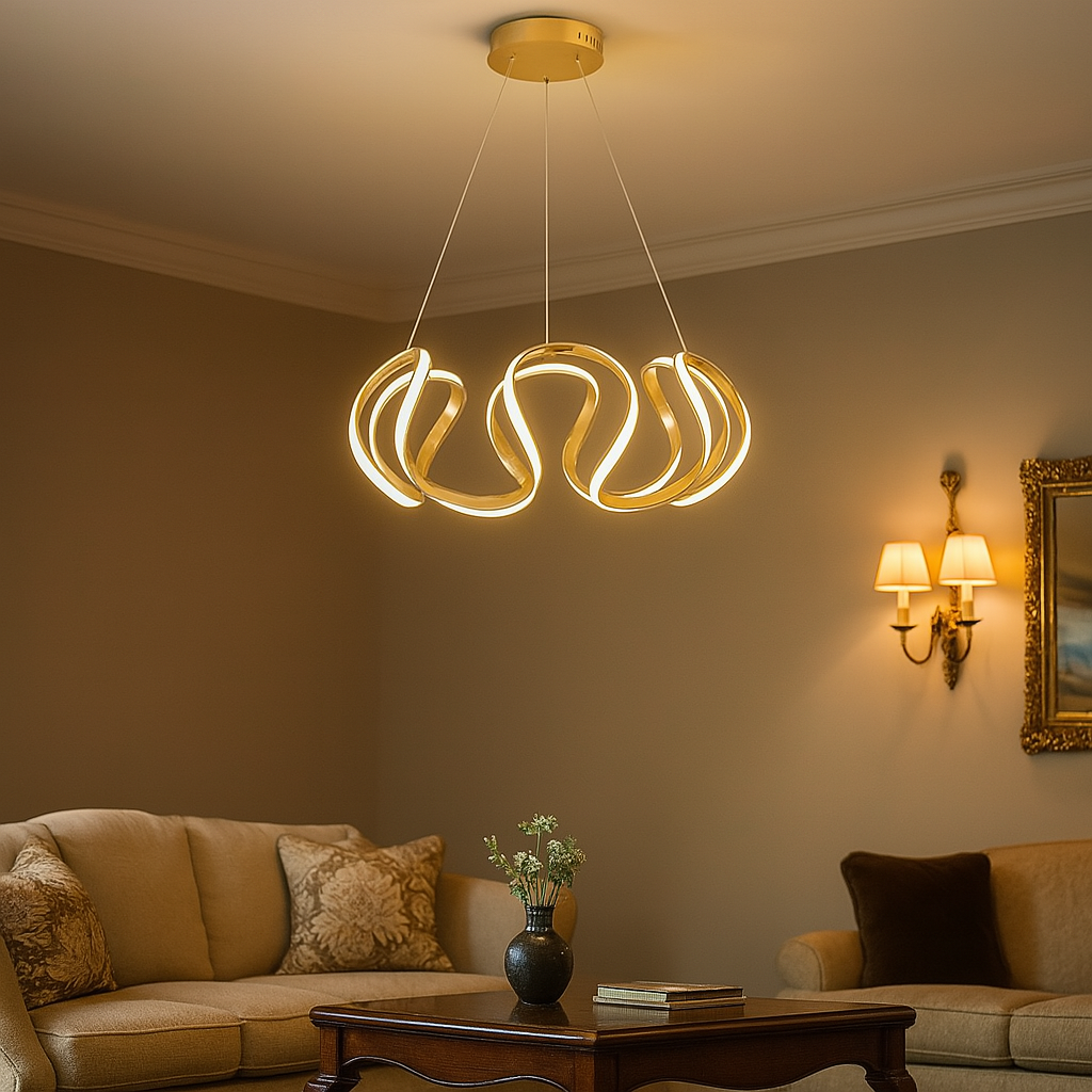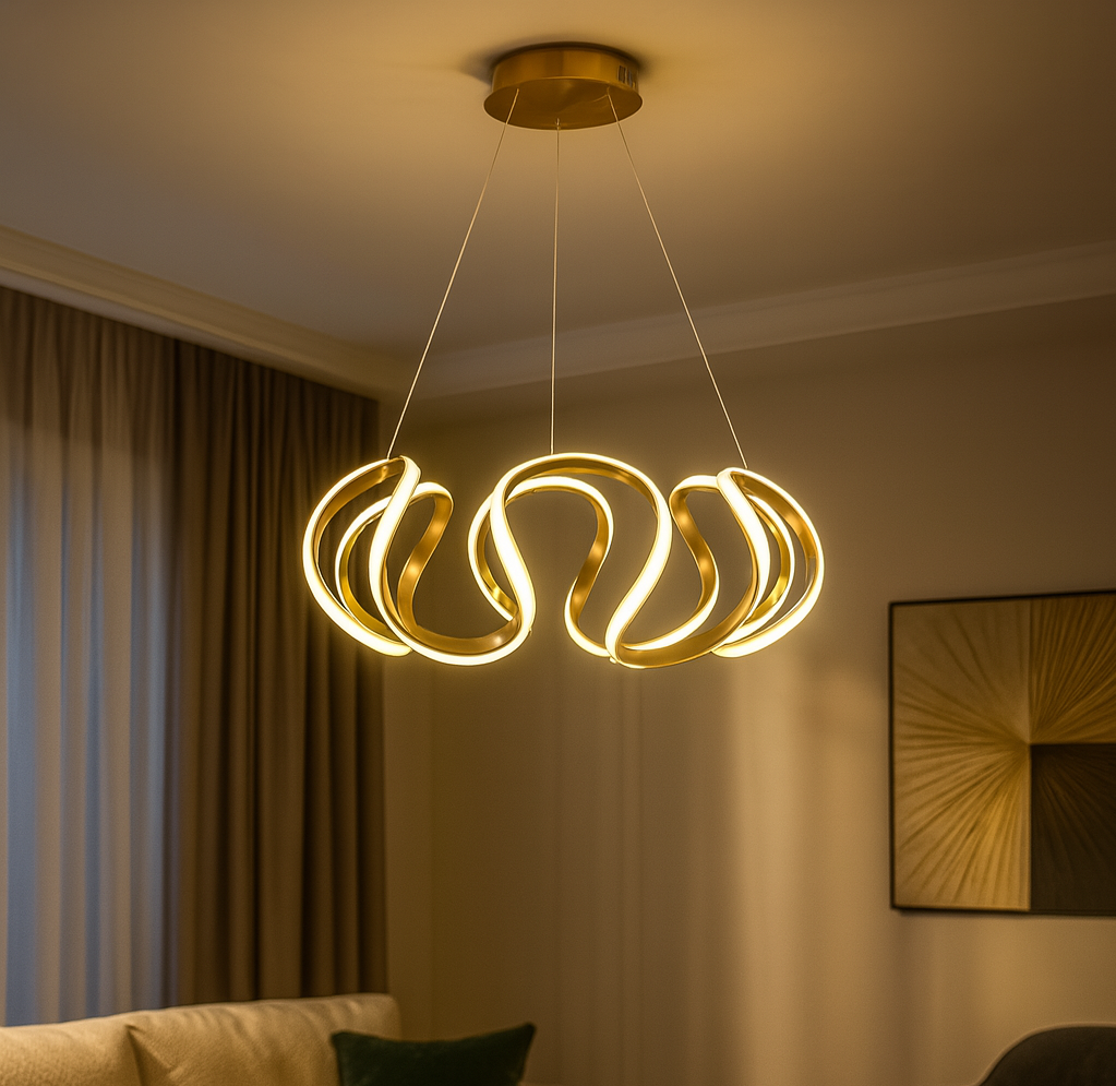 - Elevate your living space with this stunning modern LED chandelier, crafted with a premium metal base and durable acrylic light arms that deliver both elegance and longevity. Designed to make a bold statement, this chandelier features a sleek, sculptural design that brings artistic flair to any room.