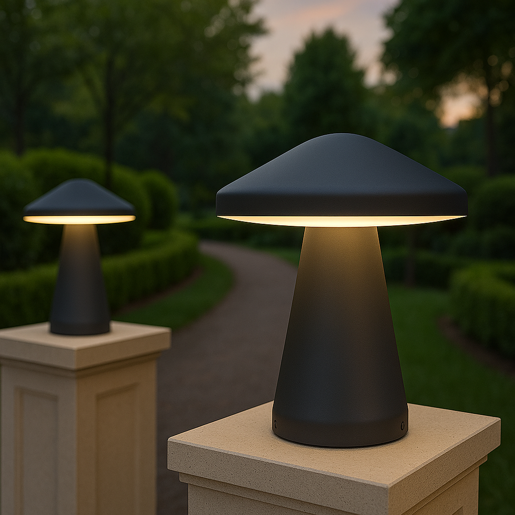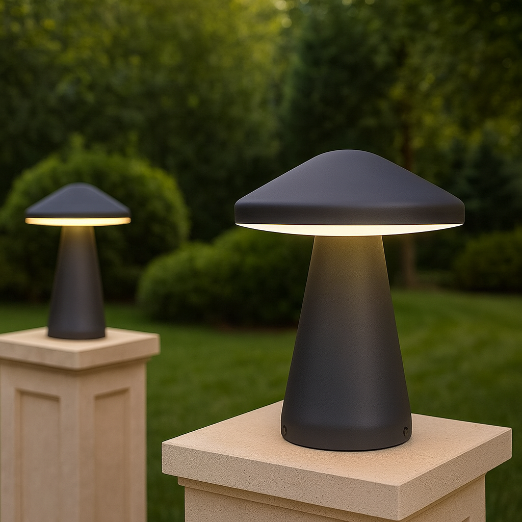Design: Modern Mushroom-shaped head with diffused LED lighting.